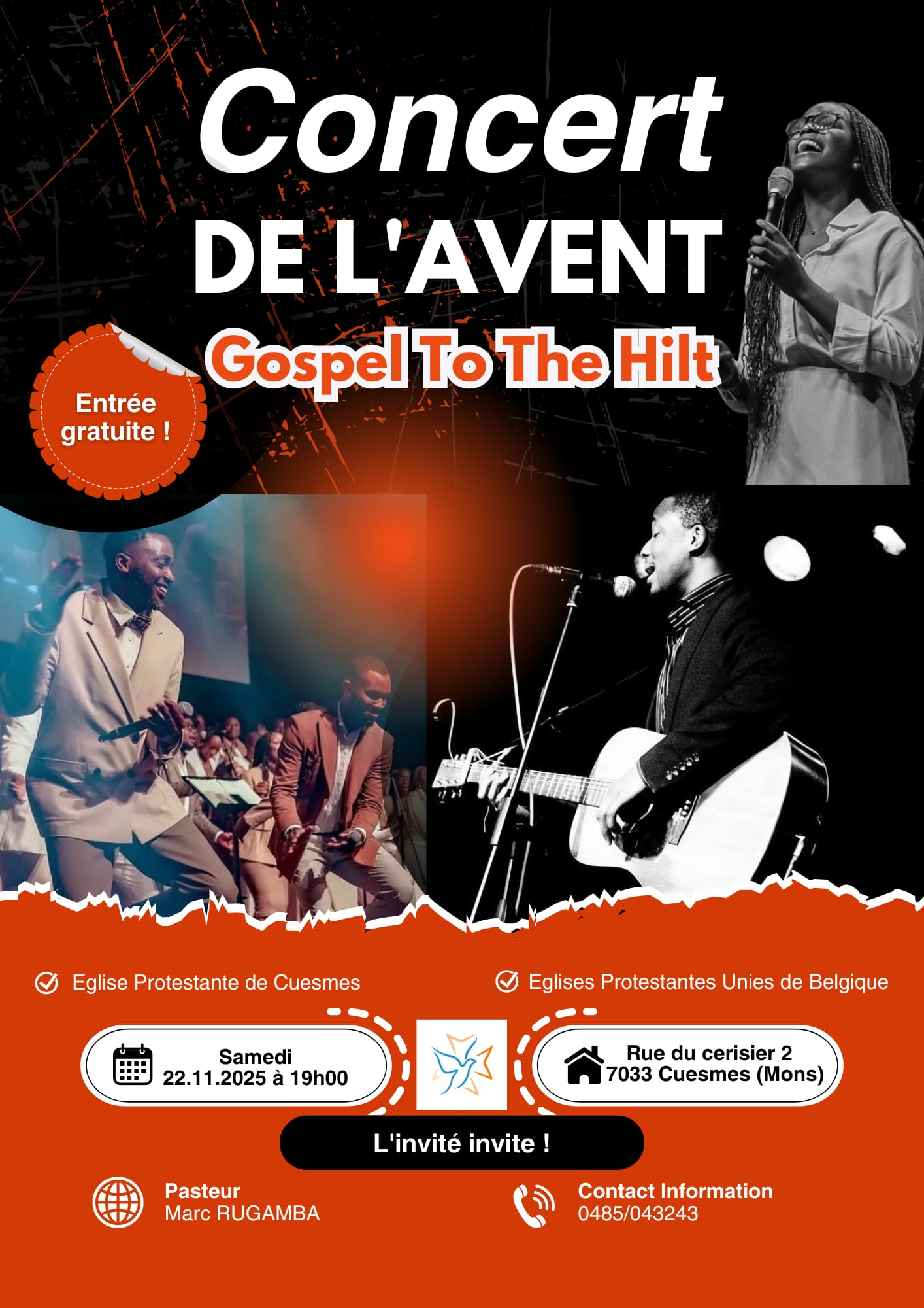 Accueil › Calendrier › Concert de l'avent - Gospel To The Hilt Concert de l’avent – Gospel To The Hilt 22/11/202519:00Rue du Cerisier 2, Cuesmesnone 4 Share on FacebookTweet on TwitterGoogle+LinkedInPinterest Descriptif L'itinéraire Share on FacebookTweet on TwitterGoogle+LinkedInPinterest Post navigation Previous EventDu passé, ne faisons table rase : à la rencontre de nos racinesNext EventColloque – La place des femmes… Plus d'évènements 08Nov2025 Colloque – La place des femmes… 01Nov2025 Du passé, ne faisons table rase : à la rencontre de nos racines 09:00 – 17:00 10Nov2025 Séance info : le volontariat international 19:00 – 20:00 17Déc2025 L’école, fabrique d’inégalités? 19:00 30Nov2025 Escape game – Rongy 30Nov2025 Vente de croquettes pour le camp des jeunes – Rongy