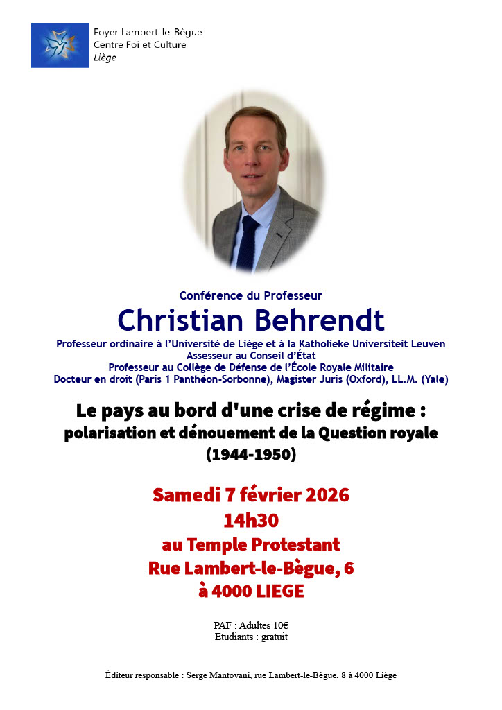 Accueil › Calendrier › Conférence : le pays au bord d'une crise de régime Conférence : le pays au bord d’une crise de régime 07/02/202614:30Rue Lambert le bègue 6, 4000 Liègenone 7 Share on FacebookTweet on TwitterGoogle+LinkedInPinterest Descriptif L'itinéraire Share on FacebookTweet on TwitterGoogle+LinkedInPinterest Post navigation Previous EventDimanche du diaconat mondialNext EventWeek-End M avec le SPJ Plus d'évènements 22Jan2026 Week-End M avec le SPJ 22Mar2026 Dimanche du diaconat mondial 30Jan2026 Bœuf Bourguignon – Frites – BLINDTEST » 18h30 14Déc2025 Repas de l’avent – Boussu-Bois 12Déc2025 Concert – The Bach Garden 19:00 13Déc2025 Concert de Noël – Uccle 20:00