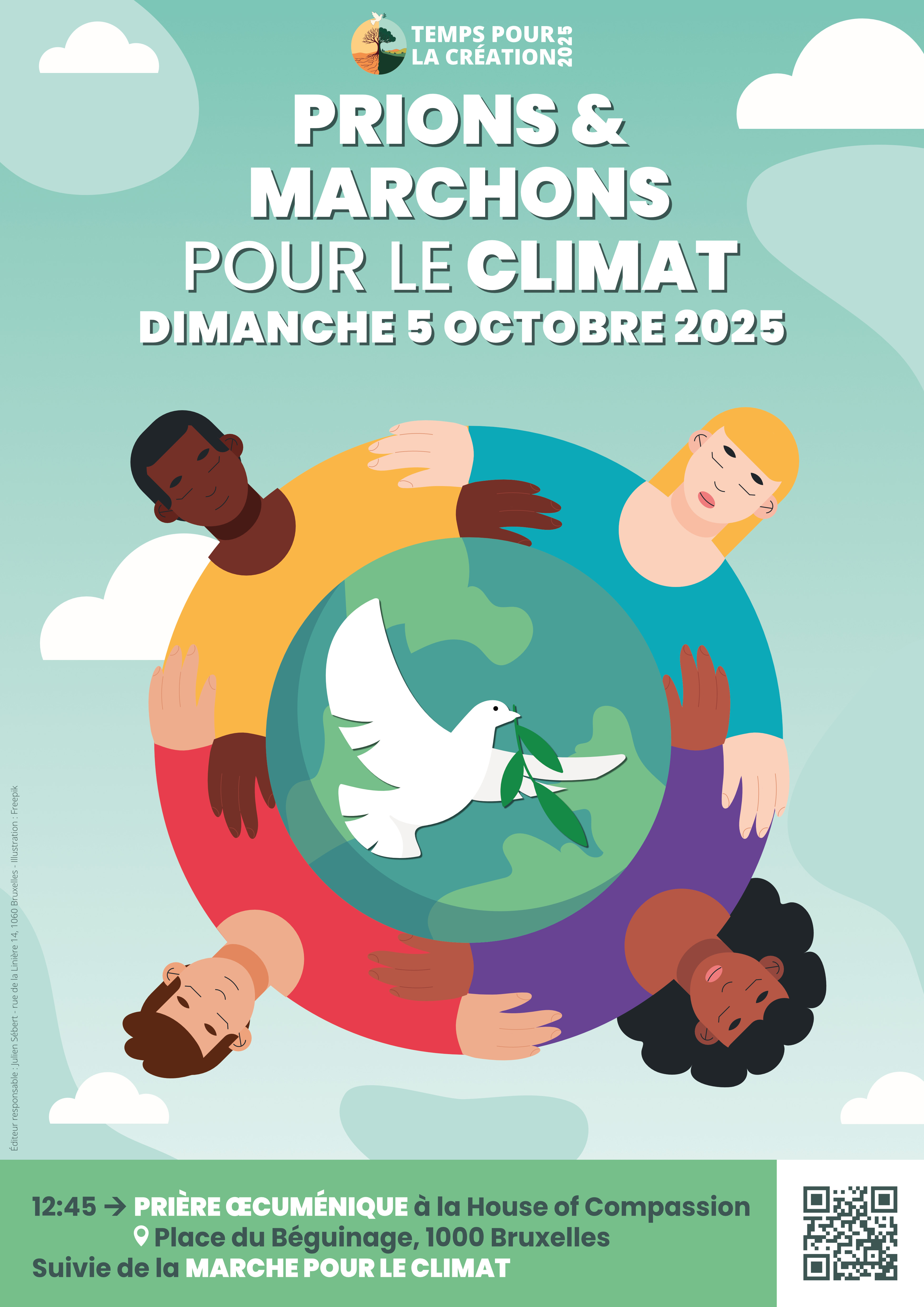 Accueil › Calendrier › Prière et marche pour le climat - Bruxelles Prière et marche pour le climat – Bruxelles 05/10/202514:45Place du Béguinage, 1000 Bruxellesnone 37 Share on FacebookTweet on TwitterGoogle+LinkedInPinterest Descriptif L'itinéraire Share on FacebookTweet on TwitterGoogle+LinkedInPinterest Post navigation Previous EventCulte d’installation – past. Pacôme Konseibo-ItingreNext EventLes midis de la Bible – Bruxelles-Botanique Plus d'évènements 04Oct2025 Atelier créatif – prière et marche pour le climat 14:00 – 17:00 21Oct2025 Certificat en islamologie 01Jan2026 Certificat en études interreligieuses – Bible et Coran : lectures croisées 05Oct2025 Cours ouvert – Jacques Ellul : une pensée en dialogue 17Oct2025 Cours ouvert – Éthique sociale et politique 07Oct2025 Cours ouvert – Christianisme et globalisation