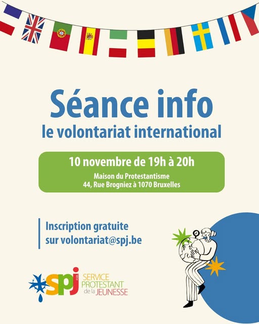 Accueil › Calendrier › Séance info : le volontariat international Séance info : le volontariat international 10/11/202519:00 – 20:00Rue Brogniez 44, Anderlechtnone 5 Share on FacebookTweet on TwitterGoogle+LinkedInPinterest Descriptif L'itinéraire Share on FacebookTweet on TwitterGoogle+LinkedInPinterest Post navigation Previous EventL’école, fabrique d’inégalités? Plus d'évènements 17Déc2025 L’école, fabrique d’inégalités? 19:00 30Nov2025 Escape game – Rongy 30Nov2025 Vente de croquettes pour le camp des jeunes – Rongy 22Nov2025 Théologie par les pieds – L’ambivalence des institutions Culte d’installation – past. Priscille Djomhoué 14Mai2026 ProFest 2026